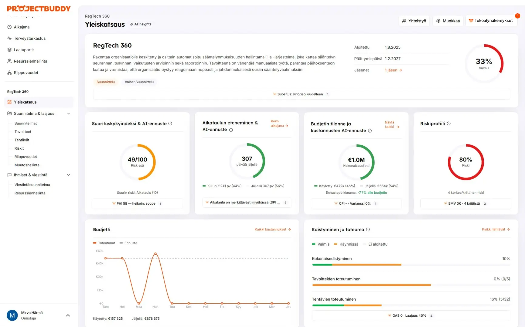 Probably not – and that is exactly why ProjectBuddy is different. It's not designed to replace your existing tools but to provide an intelligent layer of situational awareness on top of them. It aggregates critical data into a single view, allowing you to see exactly where you stand in seconds – without hunting for info across multiple systems.
